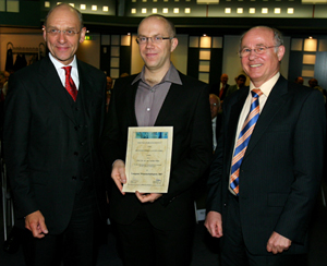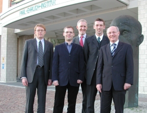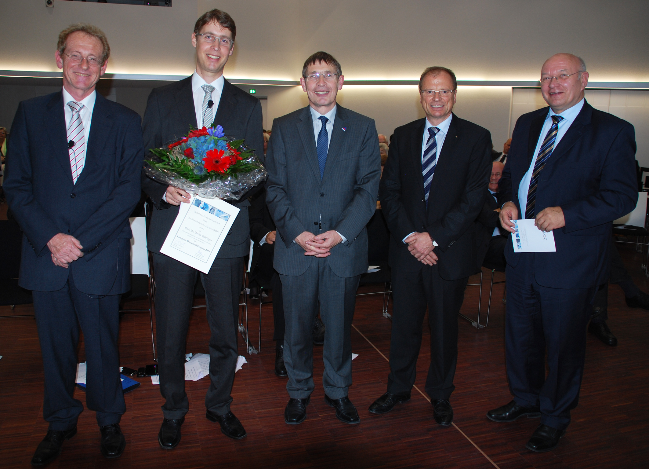 für seine eingereichte Arbeit zum Thema „Die Funktion eosinophiler und basophiler Granulozyten bei der Typ-2-Immunantwort“. Das Kuratorium traf die Entscheidung für den Preisträger im Nachgang zu den Kurzvorträgen der vier Kandidaten der engeren Wahl, die am Freitag, den 14.10.11 im Paul-Ehrlich-Institut stattfanden. Der Preis wurde am 18. November 2011 um 17:00 Uhr im Paul-Ehrlich-Institut verliehen. Interessenten und Besucher waren herzlich eingeladen. v.l.n.r.: Dr. Erhard Schmidt, Prof. David